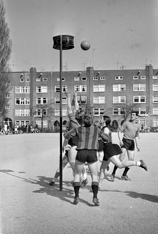 Pendant les années où je faisais partie du club de Korfbal de mon quartier à Amsterdam, “Allen Weerbaar” j’ai développé sûrement et inconsciemment une espèce de complexe de supériorité par rapport au football. Je pense que tout ceux qui pratiquaient un sport de ballon qui se jouait avec les mains, regardaient de haut ceux qui jouaient avec les pieds. Ça semble bizarre, mais j’avais et j’ai toujours l’impression que chaque sport s’adresse à une tranche bien particulière de la société. Les footballeurs me semblaient depuis toujours beaucoup plus grossiers et violents que les gens qui pratiquaient le Korfbal, le handball ou le basket. ⛹🏻♂️